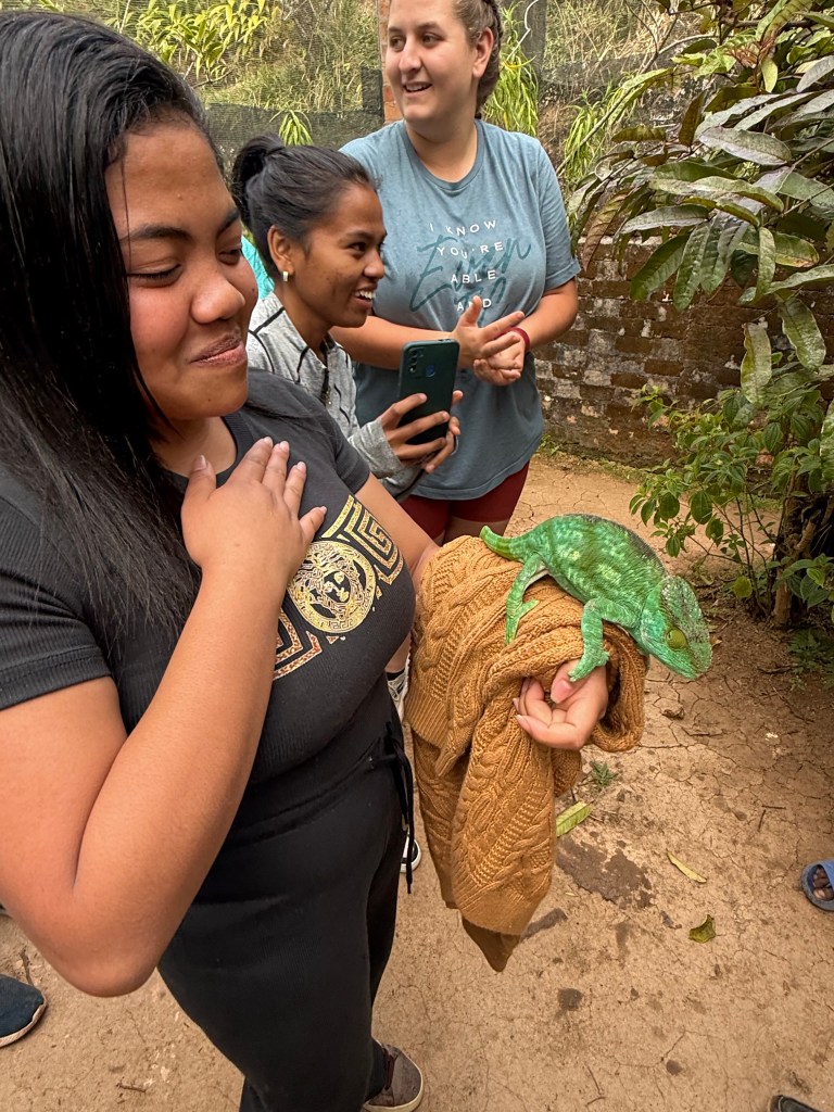 Trying to keep on a schedule when traveling in Madagascar is very challenging due to unexpected construction and traffic, but we managed to make it to the nature sanctuary by 4 PM as planned. We were able to see (and hold!) chameleons, geckos, poisonous tomatoes frogs, bats, a crocodile, and snakes. Our informative guides were great, answering our questions about these native species.