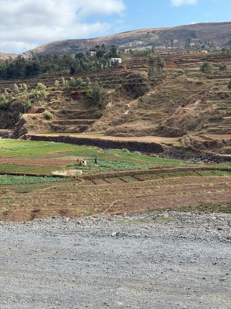 Only 15 percent of the roads in Madagascar are paved. The roads alternate between pavement full of potholes and very bumpy, dusty (currently the dry season) dirt roads. Drivers are constantly swerving to avoid damaging a tire or hitting cars, many large vans and trucks, pedestrians walking/ carrying/pushing all sorts of things, and people on many modes of transportation like motorcycles, bicycles, and rickshaw-type vehicles. We averaged about 17 mph to drive 100 miles from Antsirabe to Tana the busy, large capital city. Our expert drivers did an amazing job delivering us safely to our destinations.