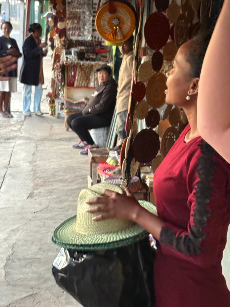 To get to the island, we loaded up 2 at a time into canoes, and a staff member paddled us across the water to the island. We saw 2 different types of lemurs sitting among the trees. We couldn’t touch them, but we were able to get close enough to take lots of great pictures. Across the water were the dancing lemurs and a red lemur playing near the river bank. Lemurs are only found in Madagascar, so it was a great experience to see so many and get so close to them. We also had a nice hike in the forest seeing local foliage, flowers, and crocodiles.